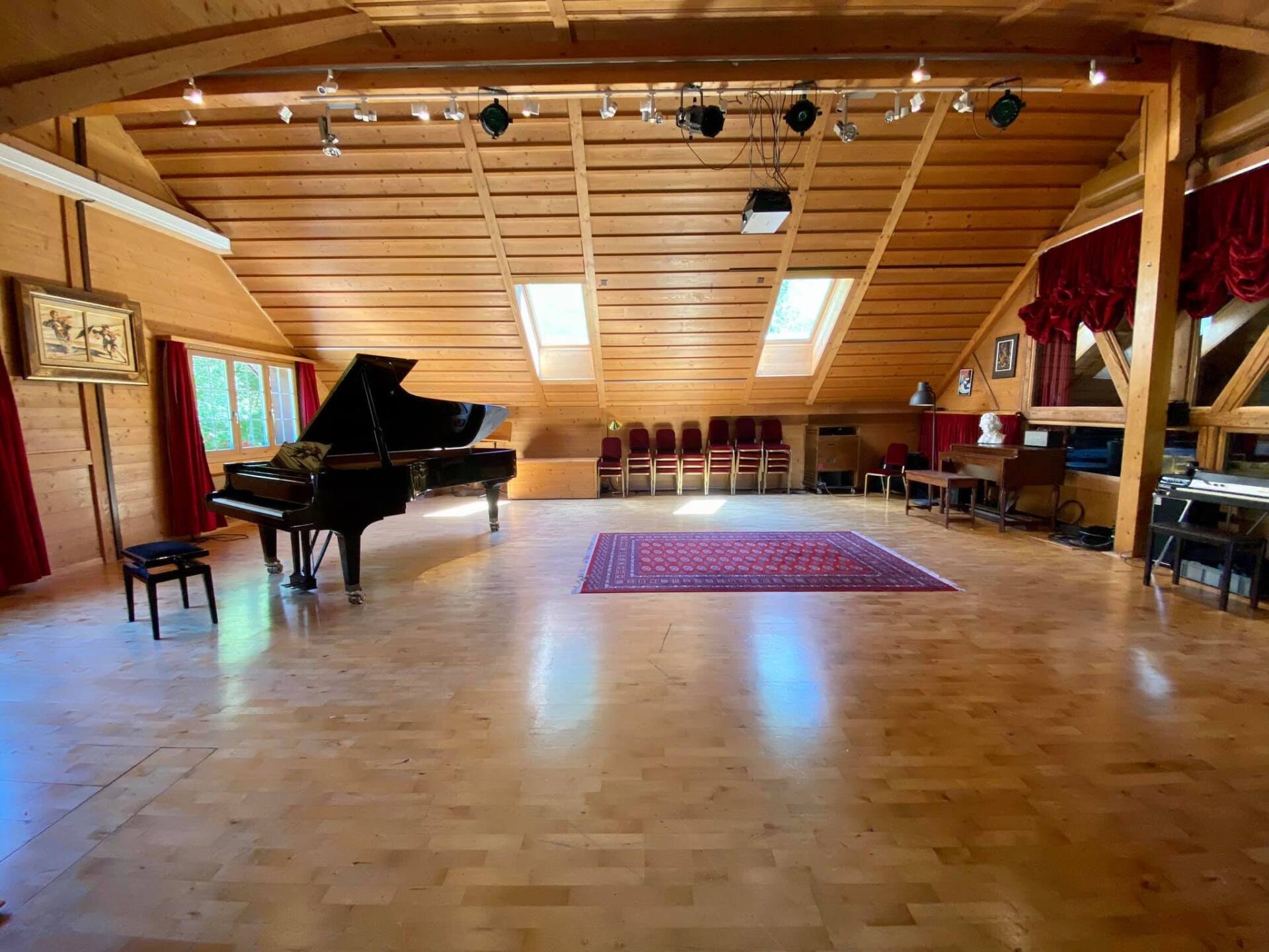 The recording room has excellent acoustics for all styles of music. The large room allows classical music to breathe, jazz to be performed in a lively way and can be divided by acoustic partitions for pop-rock and has the space to accommodate a whole big band. Recordings have already been made with Herbie Hancock, Pepe Lienhard, Pippo Pollina, Michael von der Heide or Gölä, to name a few.